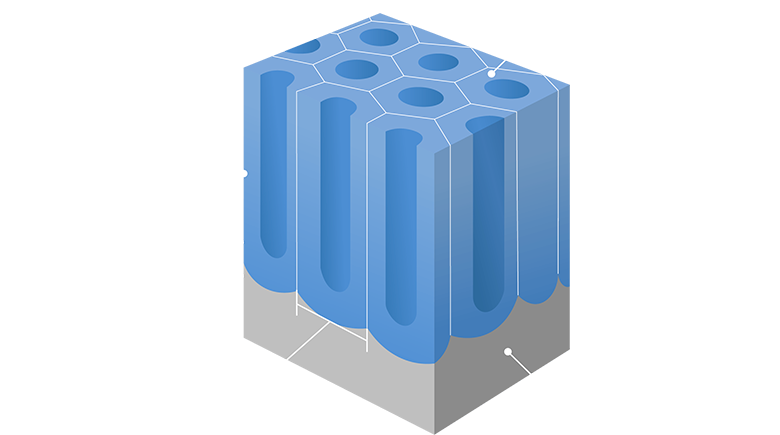 通常のアルマイト皮膜/100℃以上の環境ではひび割れが起こる
